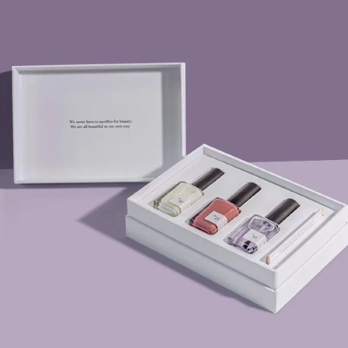 When launching luxury nail lacquer lines, presentation becomes essential. Our rigid magnetic nail polish gift boxes use premium luxury cosmetic boxes with sophisticated finishing that appeals to discerning beauty collectors.
