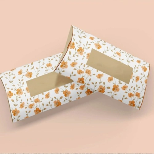 Clear window pillow boxes accommodate various window sizes and positions, ensuring optimal product visibility while maintaining structural integrity. Pillow boxes with die-cut window offer custom aperture shapes, reinforcing brand identity through distinctive window design.